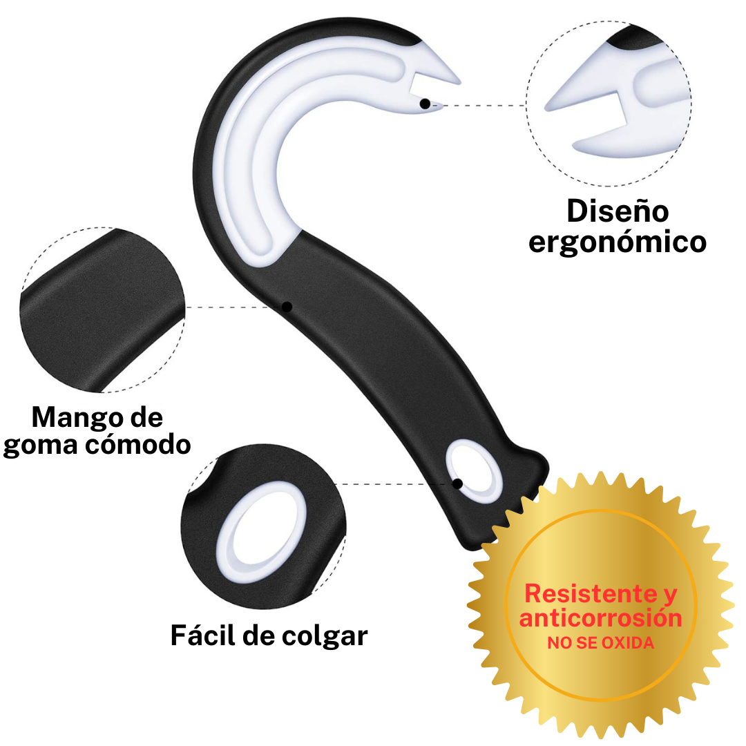 👉 El Ganchito Abridor™ está fabricado con acero inoxidable resistente y mango de goma antideslizante. Es duradero, no se oxida y está diseñado para un uso prolongado en la cocina.